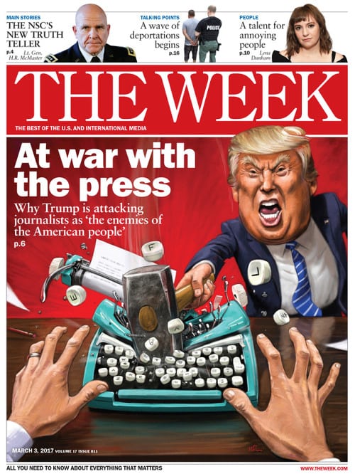 سیاستهای ترامپ از بدو آغاز به کارش در دولت آمریکا مورد هجوم منتقدان بسیاری قرار گرفت. در این میان به یقین این نشریات و جریدههای آمریکایی بودند که بیشترین نقش را در نقد به سیاستهای او داشتند. در اینجا طرح جلدهایی میبینید از نشریاتی نظیر اکونومیست، نیورپابلیک، تایم، دِ ویک، رولینگ استون و … که کاریکاتورهایی از دونالد ترامپ را عکس یکشان کردند.