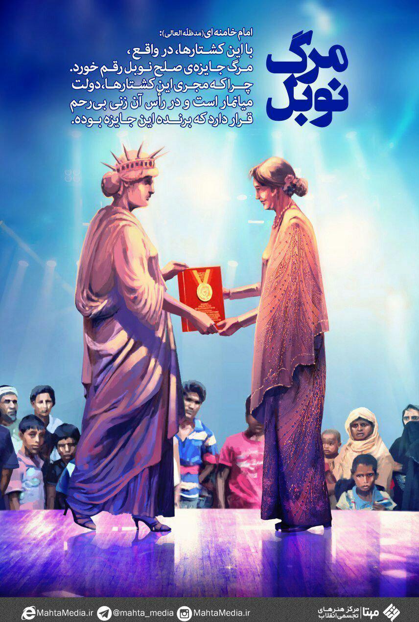 مرکز هنرهای تجسمی انقلاب وابسته به مرکز تخصصی فرهنگی کشور، جدیدترین طرح‌های خود را با پرداختن به فاجعه نسل کشی مسلمانان در میانمار و با عنوان‌های «میانِ مار» و «مرگ نوبل» منتشر کرد.