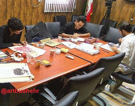 در این کارگاه هنرمندان بوشهری تصاویری از جنایت های داعش به همراه قربانیان و مظلومان گرفتارشده در بندِ تروریست ها به تصویر کشیدند.