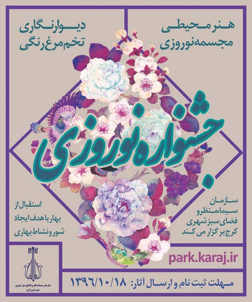 سازمان سیما، منظر و فضای سبز شهری شهرداری کرج به مناسبت فرارسیدن نوروز ۱۳۹۷در نظر دارد جشنواره نوروزی سال ۹۷ را برگزار نماید . این جشنواره در قالب طرح استقبال از بهار و با هدف ایجاد شور و نشاط بهاری در شهر از طریق مشارکت هنرمندان و بهمنظور زینت بخشیدن به فضاهای شهری، طرحریزی شده است. در این ارتباط از کلیه هنرمندان دعوت می شود، طرحهای خود را مطابق ضوابط فراخوان، به دبیرخانه جشنواره ارائه نمایند .