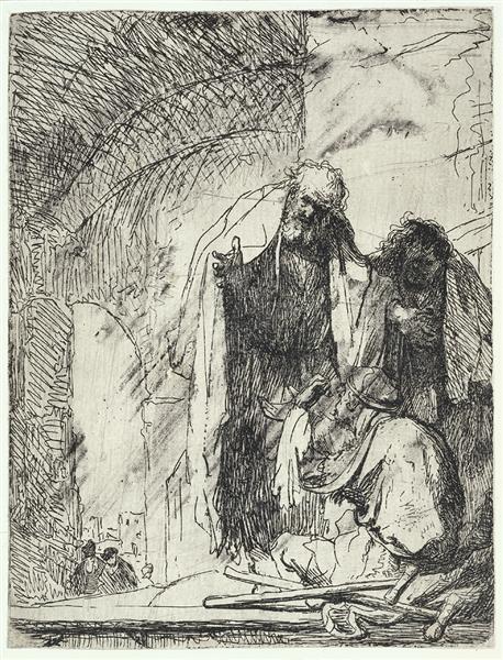 کار رمبراند در نخستین سالهای فعالیت هنریش در آمستردام، از شیوه کار روبنس و دیگر نقاشان هلندی پیرو کاراواجو مانند هونتهورست متأثر بود. مثلاً در تابلویی چون شام در امائوس که به حدود ۱۶۳۰ مربوط میشود، موضوع را با درام برجستهای - با ایجاد تضادی شدید میان نور و سایه - شبیهسازی میکند، و حتی از شیوه مأنوس نقاشان همعصرش استفاده میکند و منبع نور را پشت یک شکل مانع قرار میدهد، که در اینجا سر مسیح است.