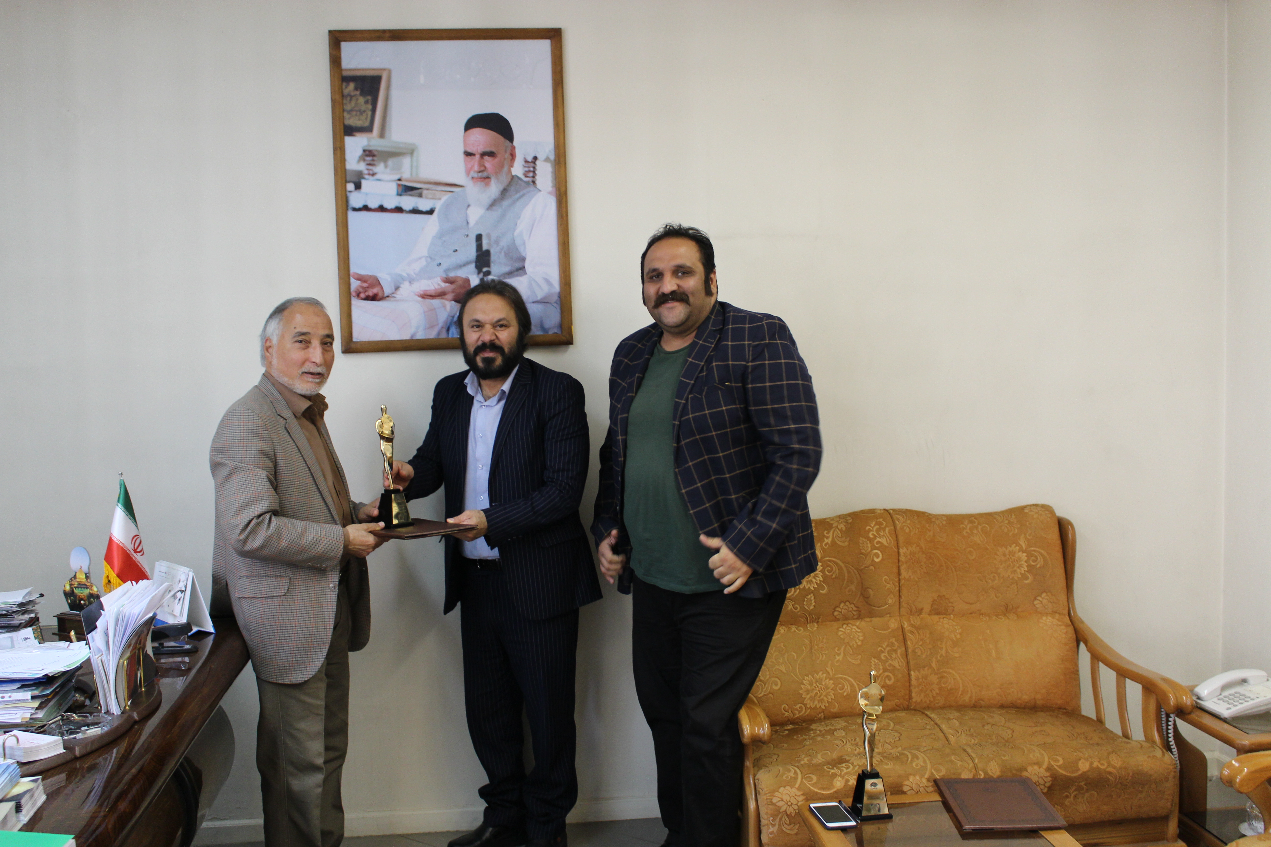 به گزارش سایت صحنه، کوروش زارعی مدیر مرکز هنرهای نمایشی به همراه امیرحسین شفیعی دبیر پنجمین همایش سراسری تئاتر مردمی خرداد، صبح امروز با حضور در دفتر ستاد ارتحال امام خمینی (ره) از غلامعلی اصغریان معاونت فرهنگی ستاد ارتحال امام خمینی (ره) با اهدای لوح تقدیر و تندیس جشنواره به پاس حمایت های بی کران در برگزاری این همایش تقدیر کردند.