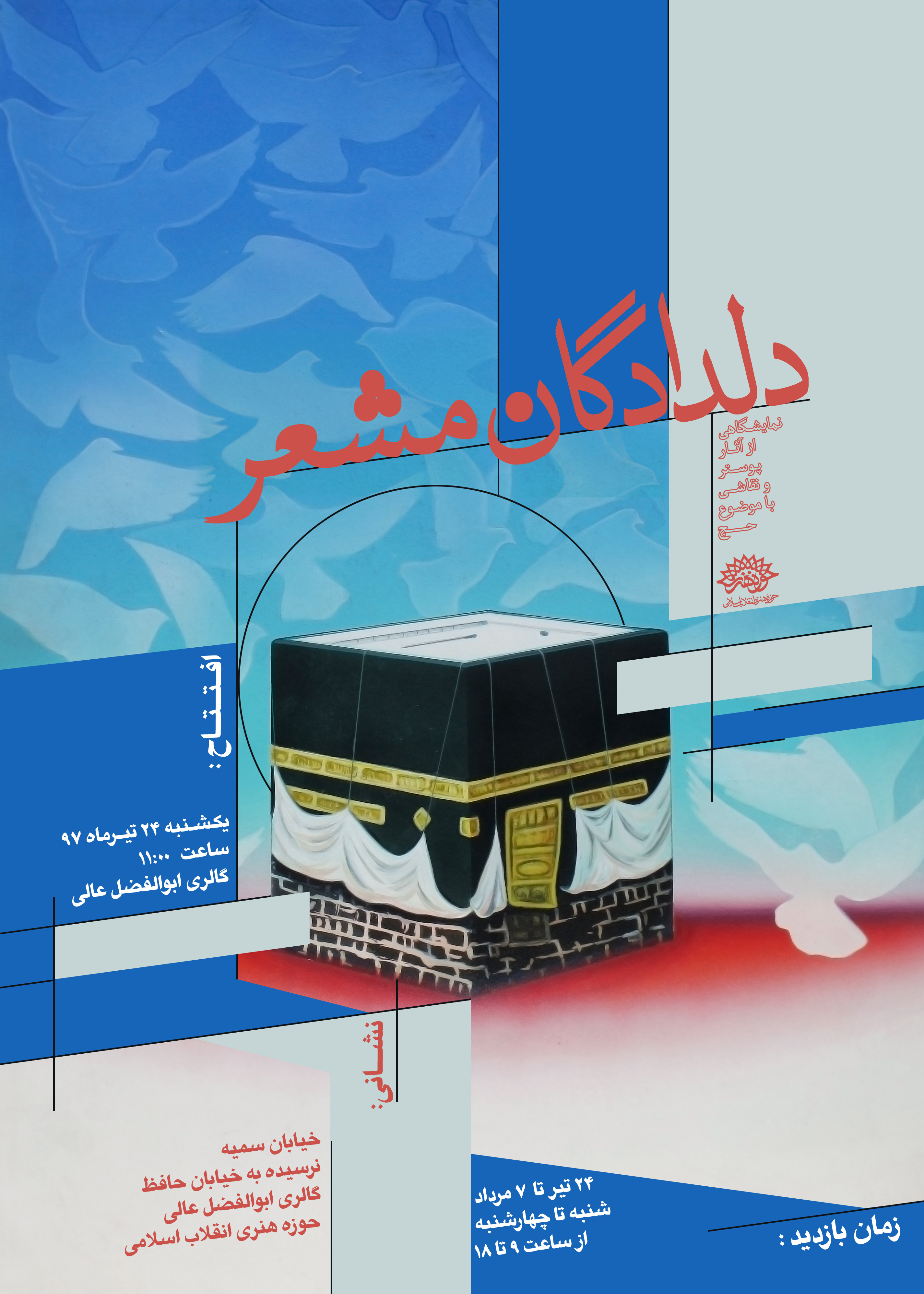 نمایشگاه نقاشی و پوستر «دلدادگان مشعر» و نمایشگاه عکس«حج» از 24 تیرماه الی 7 مرداد ماه سال جاری شنبه تا چهارشنبه از ساعت 9 الی 18 میزبان علاقهمندان هنرهای تجسمی خواهد بود.
