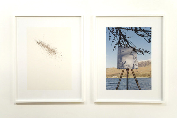 «این مجموعه در دل طبیعت خلق شده و شامل نقاشیهایی است که بر اثر برخورد نوک خودکارهایی که به شاخه درختان بسته شده با کاغذ به وجود آمده است.