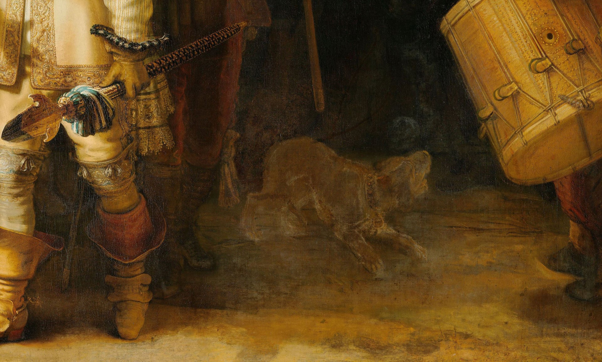 رامبرانت تابلوی «تماشای شب» را در سال ۱۶۴۲ و دوران طلایی هلند خلق کرد. این اثر بصورت رسمیتر با عنوان گروهان نظامی منطقه دو تحت فرمان سرهنگ فرانسیس بانیک کوک فرمانده گارد شهری آمستردام، معروف است. سرهنگ فرانسیس از رامبرانت خواسته بود تا پرترهای گروهی از گروهان تیراندازیاش خلق کند. این تابلو بیشتر حالت حرکتی به بیرون دارد تا حالتی از ایستایی گروهی مرسوم آن دوران در آثار هنری. در این تابلو چهرههای کانونی تقریبا در اندازه طبیعی خلق شده و سرهنگ و ستوان در مرکز تصویر و یک دختر در پس زمینه سمت چپ مرکز تصویر در هالهای از نور قرار دارد.
