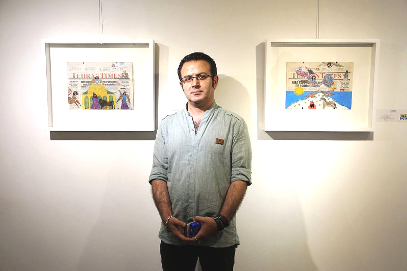 او درباره استفاده از روزنامههای انگلیسی گفت: قصد داشتم متن تا حد ممکن ناخوانا باشد و به همین دلیل روزنامه انگلیسی را به کار بردم. دلیل انتخاب روزنامه تهران تایمز هم این بود که لوگوی زیبایی داشت و در سالهای گذشته گرافیک خیلی خوبی داشت که مرا جذب میکرد. از سوی دیگر اسم این روزنامه هم اهمیت دارد. من در این آثار قصههای قدیمی و تصویرگری آنها را امروزی میکنم و این حس به مخاطب دست میدهد که این اتفاقات متعلق به همین زمان است.