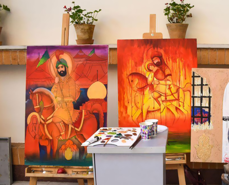 مراد فتاحی دیگر هنرمند این کارگاه درباره نقاشی خود گفت: «من در این اثر، حضرت ابوالفضل (ع) را که در حال برداشتن آب است کشیدهام که در این لحظه به یاد تشنگان کربلا می افتد و آب از دستش می ریزد.