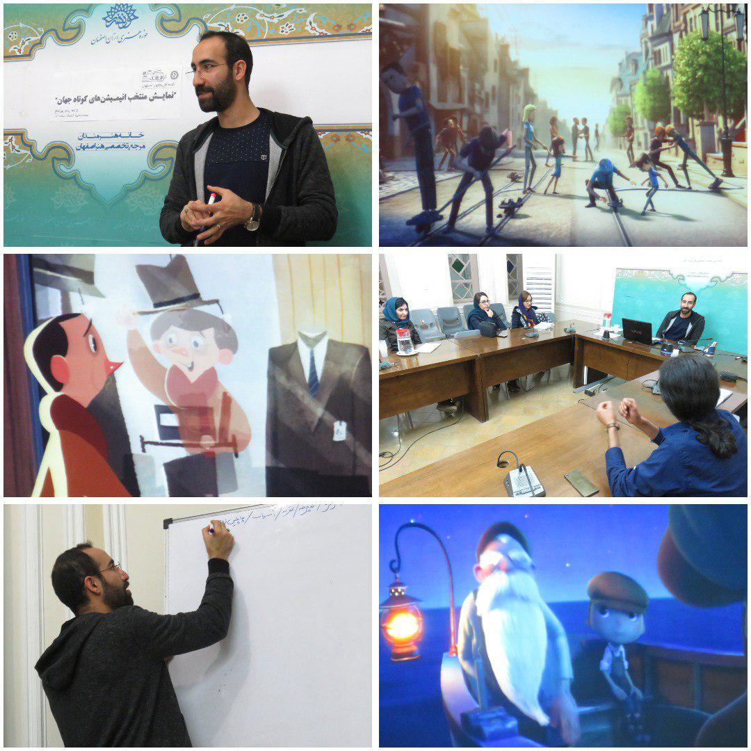 به گزارش روابط عمومی حوزه هنری استان اصفهان، به نقل از محمودرضا صنعتی در این کارگاه که توسط پیام پورفلاح مدیر خانه کاریکاتور اصفهان ارائه شد، پورفلاح ابتدا از حاضرین در جلسه خواست که قبل از تماشای آثار، نمادها و نشانههای مرتبط و همچنین رنگ و فضاهایی که براساس اسم هر انیمیشن در ذهنشان تداعی می شود را بیان کنند.