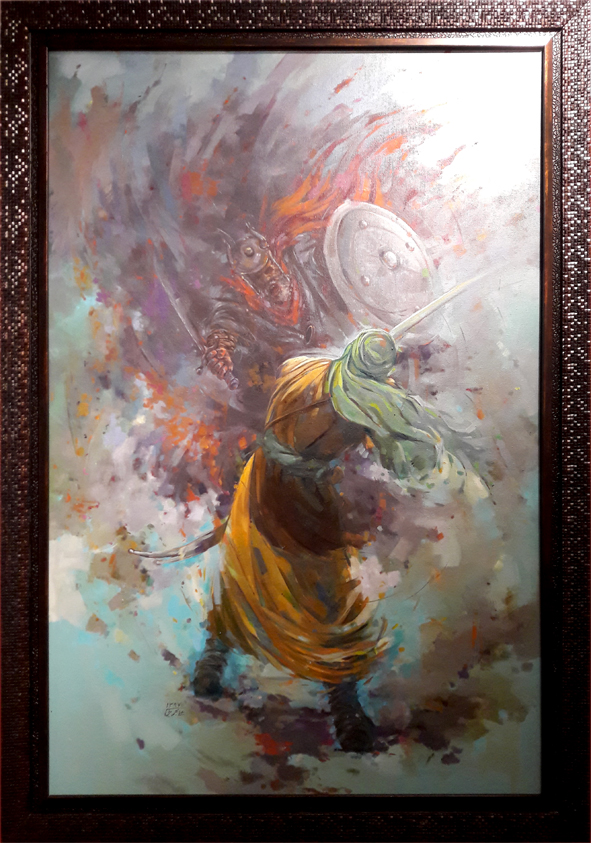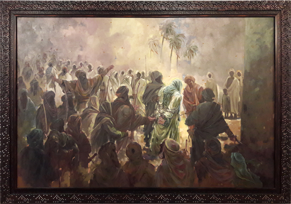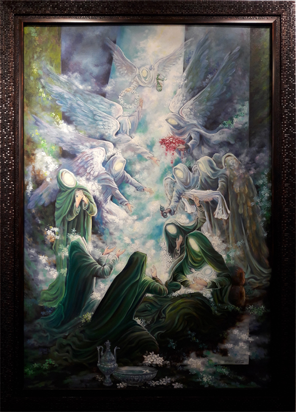 پیش از نگارش این سطور با بحرینی مذاکره دوستانهای پیرامون آثارش داشتم. مهربانانه و بیغرض با او سخن گفتم و او نیز بیتکلف و مشتاقانه شنید و من دیدم چقدر با این نقاش احساس دوستی دارم. برای همین به نظرم رسید که بخشی از آنچه به ایشان گفتم برای دوستان دیگر نیز بیان کنم، شاید برای کسانی که علاقمندند به مضامین و موضوعات دینی توأماً بپردازند به کار آید. تأکید بر جمع مضامین و موضوعات دینی مهم است. از این رو که اولی محدودیتهای دومی را در بیان درهم میشکند و راه را برای ورود خیال و شکست فضا و زمان و موقعیت به ویژه در هم آمیختن زمان و جغرافیا فراهم میسازد و تمامی اینها که برشمرده شدند ابزارهای شگرفی در دست هنرمند میشوند برای گسترش بیان مفهومی خود و ایجاد ایهام و استعاره و از همه مهمتر «راز» که مخاطب را جذب کند و همواره او را به کشف لایههای پنهان اثر بخواند؛ عاشقانه، عارفانه و البته با حفظ زیبایی ساختار اثر.