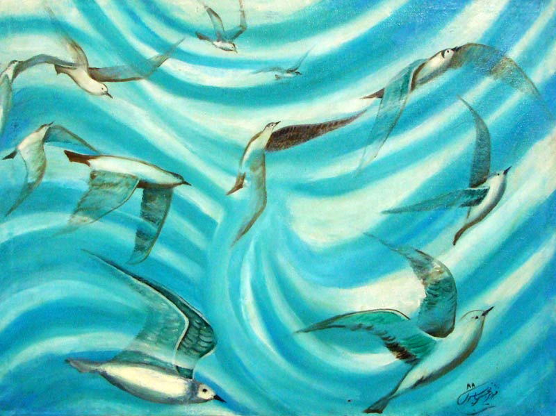 همیشه عشق حاکم بر زندگی من بود؛ عشق به هنر و ادبیات سرزمینم و فرزندانم. در خلق آثار خود را چون پرندهای با بالهای وسیع اما زخمدیده و دلشکسته میبینم، اندیشه هایم را با رنگهای وحشی رها میکنم، رها در میان امواج خطوط و رنگها.