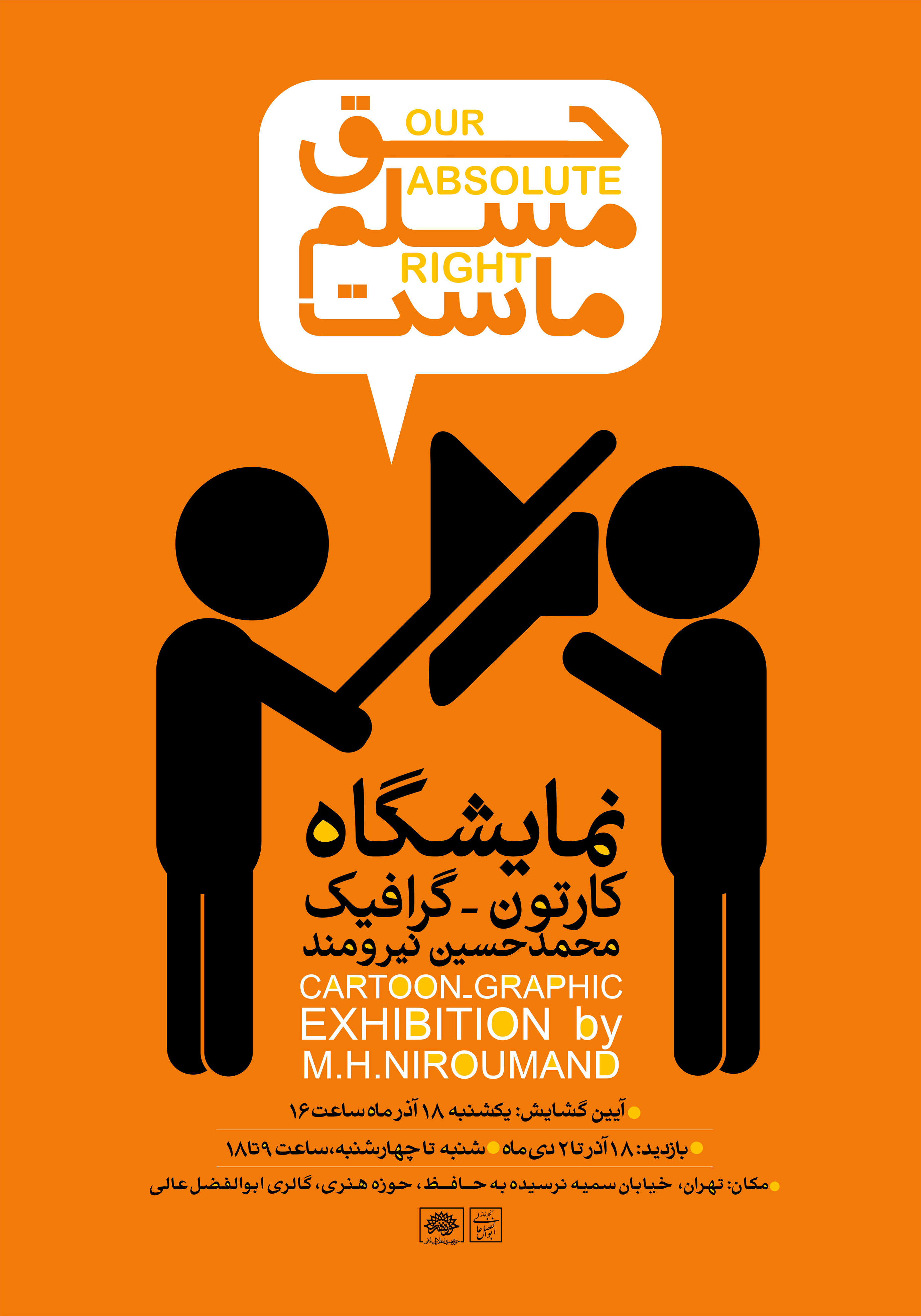 نمایشگاهی از تازه ترین آثار کارتون و گرافیک محمدحسین نیرومند با عنوان «حق مسلم ماست» یک‌شنبه ۱۸ آذرماه در گالری ابوالفضل عالی حوزه هنری افتتاح و برپا می‌شود.