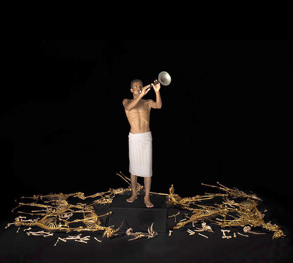 این هنرمند درباره ساخت مجسمههای نمایشگاه «عزای عمومی» میگوید: در پی مرگ این حیوانات از تاریخ اسفند ۹۵ تا اردیبهشت ۹۶ حدود ۲۸ راس آهوی مرده پیدا کردم. تمام اسکلتهایی که در عکسها دیده میشود واقعی هستند. در واقع شروع ماجرا محیطزیستی بود. بعضی از جنازهها که قدیمیتر بودند به دلیل ماندن در فضای باز تجزیه شده بودند و استخوان جنازههایی که تازهتر بودند را خودم جدا و تمیز کردم. مونتاژ اسکلت آهوها حدود سه ماه طول کشید که در نهایت یک گله آهو به وجود آوردم.