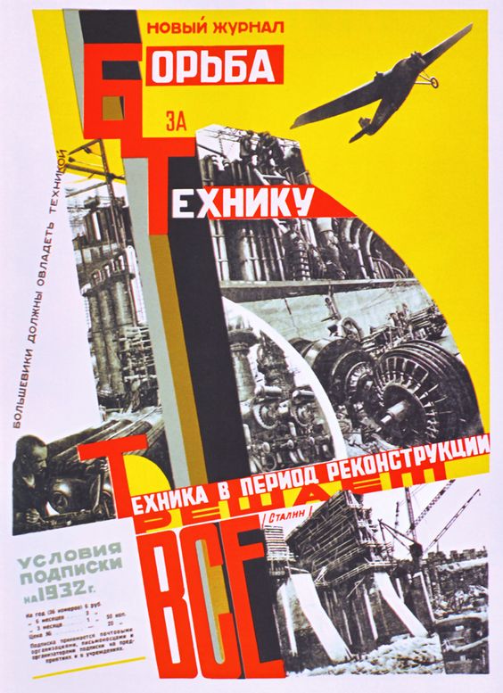 طرحهای گرافیکی، در سالهای پس از انقلاب 1917، روسیه، در این کشور در کنار «فیلم»، به عنوان رسانهای تودهای رشد و توسعه یافته و مبدل به زبانی جدید برای صدور انقلاب شد. این طرحها، تأثیر مهمی بر هنرمندان آلمان و هلند، در سالهای واپسین جنگ جهانی اول داشت. کشور روسیه، تصویرسازی سنتی پرقدرتی داشت. این تصویرسازی «لوبک» خوانده میشد. لوبکها، شمایلکشی داستانهای مقدسین بود که به صورت کندهکاری روی صفحات چوب، ساخته میشد. از سوی دیگر مجلاّت مصوّر سیاسی آن سالهای روسیه تحتتأثیر جنبش روشنفکرانه «نوتوریستی» بودند. در چنین فضای متلاطم و پربیم و امیدی که از محرومیتهای مادی ناشی شده بود، در خلال جنگ داخلی و نیز تنشهای سیاسی در چنین جامعه کمسواد، تصاویر و واژهها دستخوش انقلاب شدند. تا قبل از استفاده وسیع از رادیو، بر اثر برقکشی سرتاسری، برای اینکه مردم روسیه را با پیشرفتهای سیاسی و گزارشهای مربوط به جبهههای جنگ داخلی سالهای 1918 تا 1921، باخبر سازند، تنها طریقه، سخنرانی بود.