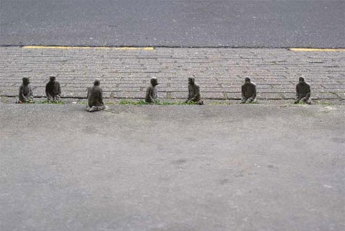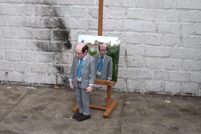 مجسمههای او اغلب با ارتفاعی ۱۵ سانتیمتری نمایانگر کلیشهای اجتماعی به عنوان مشاهدات و نقطهنظراتی در مورد کاپیتالیسم، قدرت و بروکراسی است. برای مثال در یکی از این مجسمهها که در گودالی کوچک در«هاکنی» واقع در شرق لندن، گروهی از مردان با لباسهایی با عبارات بیتفاوت نمایانگر«شکلی کاملا کهن از وطنپرستی و کاپیتالیسم» است.