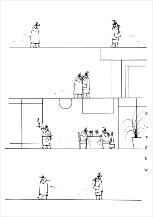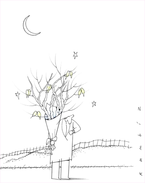 در یکی دیگر از کارها مردی را می‌‎‌بینیم که دسته گلی به دست دارد و در حال نگاه کردن به ساعت خود است. نکته اینجاست که دسته گل دیگر شباهتی به گل ندارد و در حال تبدیل شدن به درخت است. حتی پرنده‌ها نیز بر روی آن نشسته‌اند و مرد هنوز منتظر است. در واقع این کار به وقت‌شناسی آدم‌ها و روابط بین انسان‌ها اشاره می‌کند.