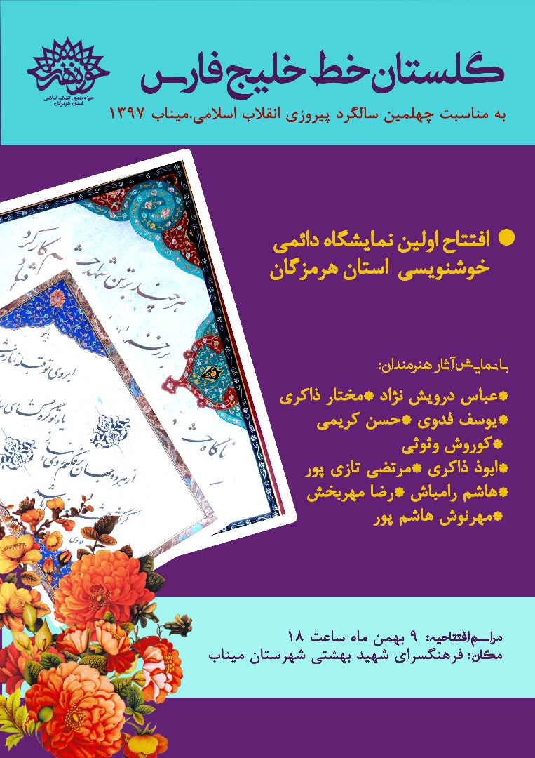 به گزارش روابط عمومی حوزه هنری هرمزگان در عصر روز سه شنبه نهم بهمن ماه این نمایشگاه با نمایش آثار چند تن از هنرمندان فعال عرصه خوشنویسی استان گشایش یافت.
