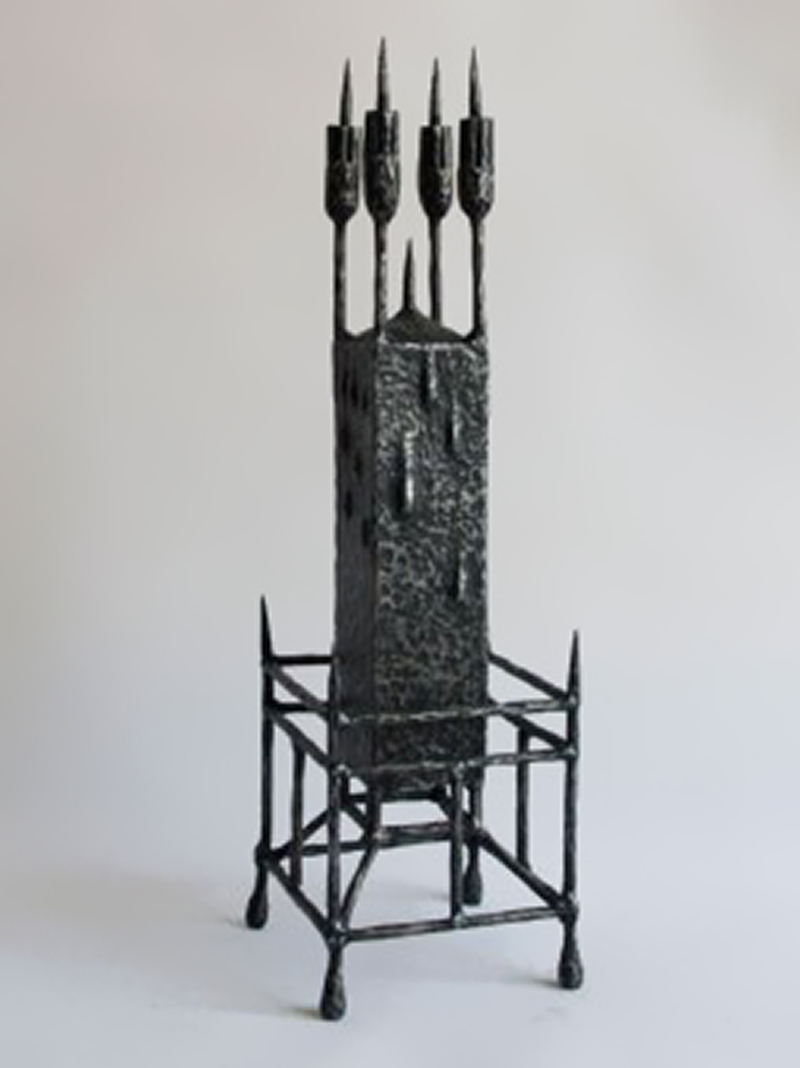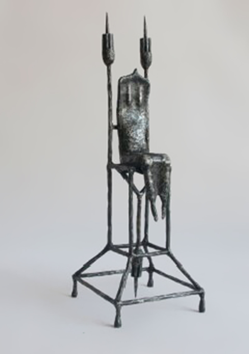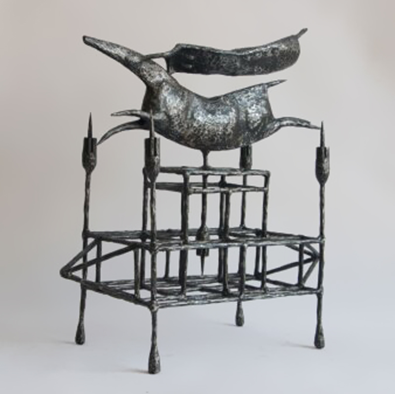 یکی از نکات جالب و مشترک در کلیه کارها این است که یک میلهی فلزی شاید شبیه به شمعدانی و یا مشعل در آنها دیده میشود. این بخش از کارها گاهی در حکم یک شمعدانی است، گاهی بخشی از تخت شیرین و یک جا بخشی از آرامگاه فرهاد است. حتی در «مرگ شیرین یک» میتوان گفت که این فلز در خیال شیرین همانند یک آلت قتاله برای مرگ او عمل میکند. ولی در «مرگ شیرین دو» که گویی شیرین برای همیشه آرمیده است این میله تنها در پایین تخت شیرین قابل رؤیت است. هنرمند درباره این امر میگوید: «این ویژگی از دل ساخت آثار درآمده و هدف خاصی از این کار نداشتهام. درواقع الگوی خاصی برای این کار نداشتهام.»