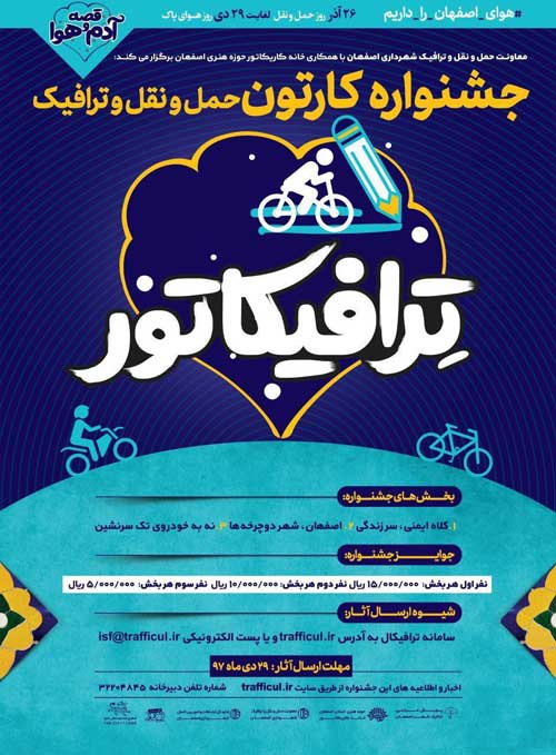 پیام پورفلاح مدیر خانه کاریکاتور حوزه هنری استان اصفهان گفت: مرحله نخست داوری آثار رسیده به دبیرخانه کارتون حمل و نقل و ترافیک " ترافیکاتور" برگزار شد. در این مرحله از بین ۲۰۹ اثر ارسالی از سراسر کشور راه یافتگان به مرحله نهایی داوری در سه بخش (اصفهان شهر دوچرخه ها، کلاه ایمنی سرزندگی، نه به خودروی تک سرنشین) مشخص شدند.