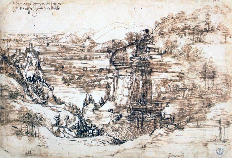 اولین تابلو نقاشی او در پنجم آگوست سال ۱۴۷۳ زمانی که «داوینچی» تنها ۲۱ سال داشت خلق شده است. این تابلو نقاشی منظرهای را از رود «آرنو» و قلعه «مونتهلوپو» در نزدیکی فلورانس را به تصویر کشیده است.