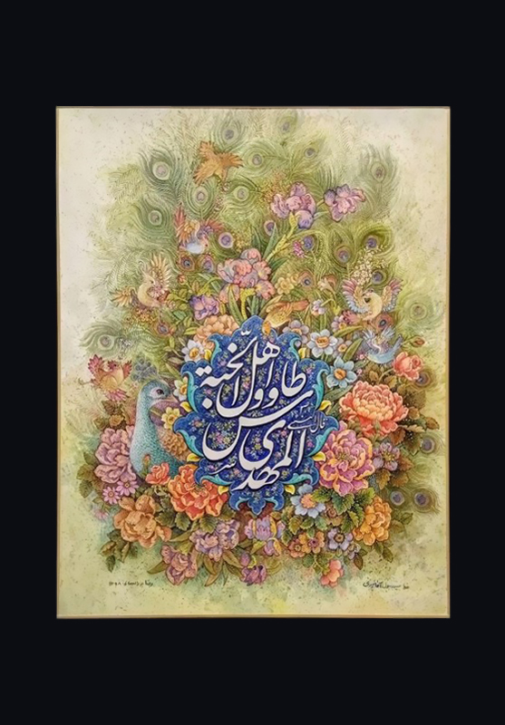 تابلوی نقاشی «المهدیُ طاووسُ اهلِ الجنّة» اثر استاد رضا بدرالسماء