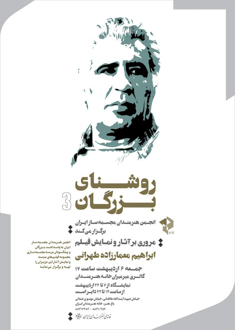 به گزارش روابط عمومی مرکز تجسمی حوزه هنری، سومین نمایشگاه «روشنای بزرگان» با نمایش آثار هنرمند پیشکسوت «ابراهیم معمارزاده طهرانی» از سوی انجمن هنرمندان مجسمهساز ایران با همکاری خانه هنرمندان ایران از ششم اردیبهشت ماه ۹۸ گشایش مییابد.