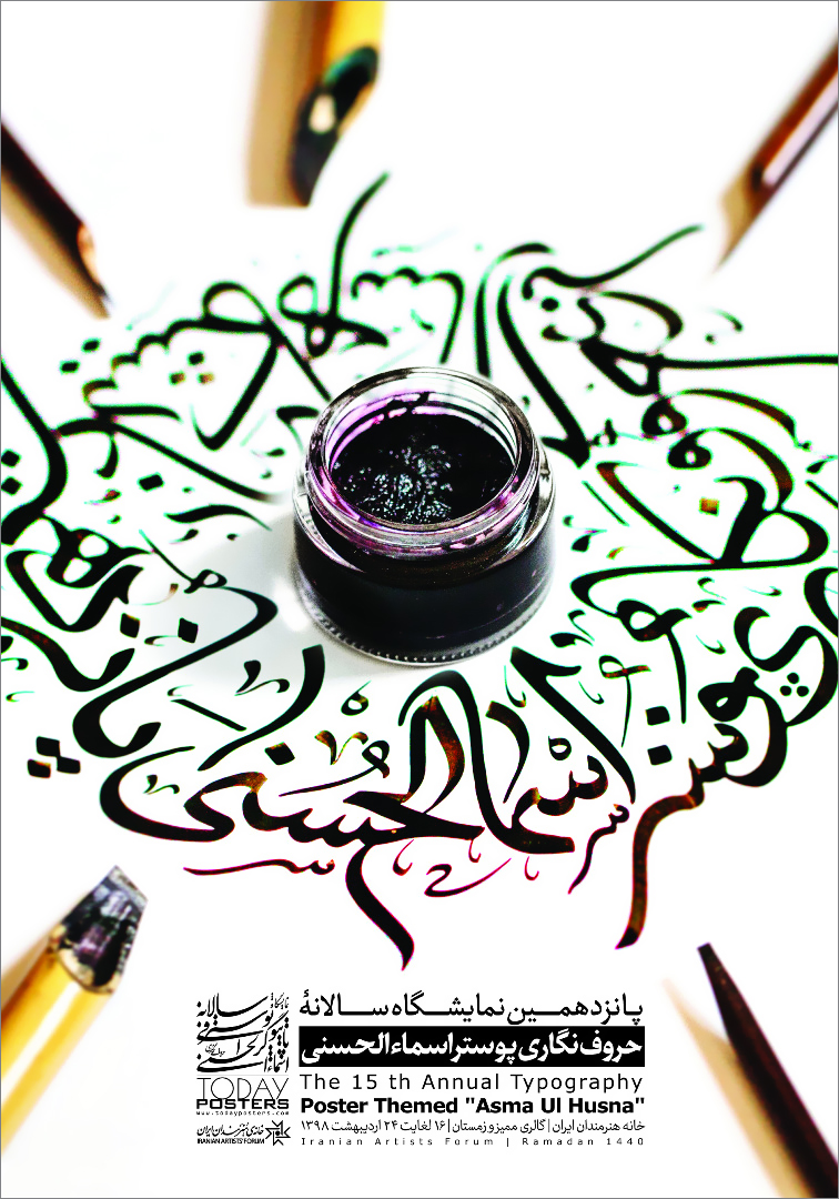 گفتنی است، پانزدهمین نمایشگاه سالانه حروفنگاری پوستر اسماءالحسنی 16 تا 24 اردیبهشت ماه در گالریهای ممیز و زمستان خانه هنرمندان برگزار میشود.