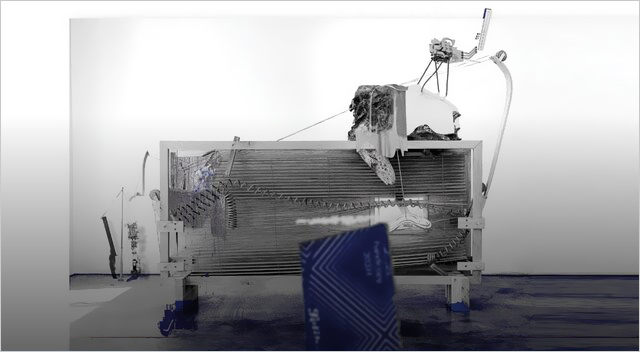 این چیدمان به وسیله کاغذهای خاکستری پاپیه ماشه توسط طراح مجرب ایرانی رضا لواسانی، شکل گرفته و تعمقی بر روی چرخه زندگی است. کمی آن سوتر صندلی خالی پیرمردی دیده میشود که نشاندهنده غیبت و مرگ است. این اثر که در پنج جعبه به ونیز حمل شده، اثر برجسته غرفه ملی ایران است. سمیرا علیخانزاده هنرمند دیگری است که از عکسهای آماده استفاده کرده تا به همراه لباسها و کفشهای ساده، تصویری شفاف از زنان جوان ایرانی در گذشته را نمایش دهد.»