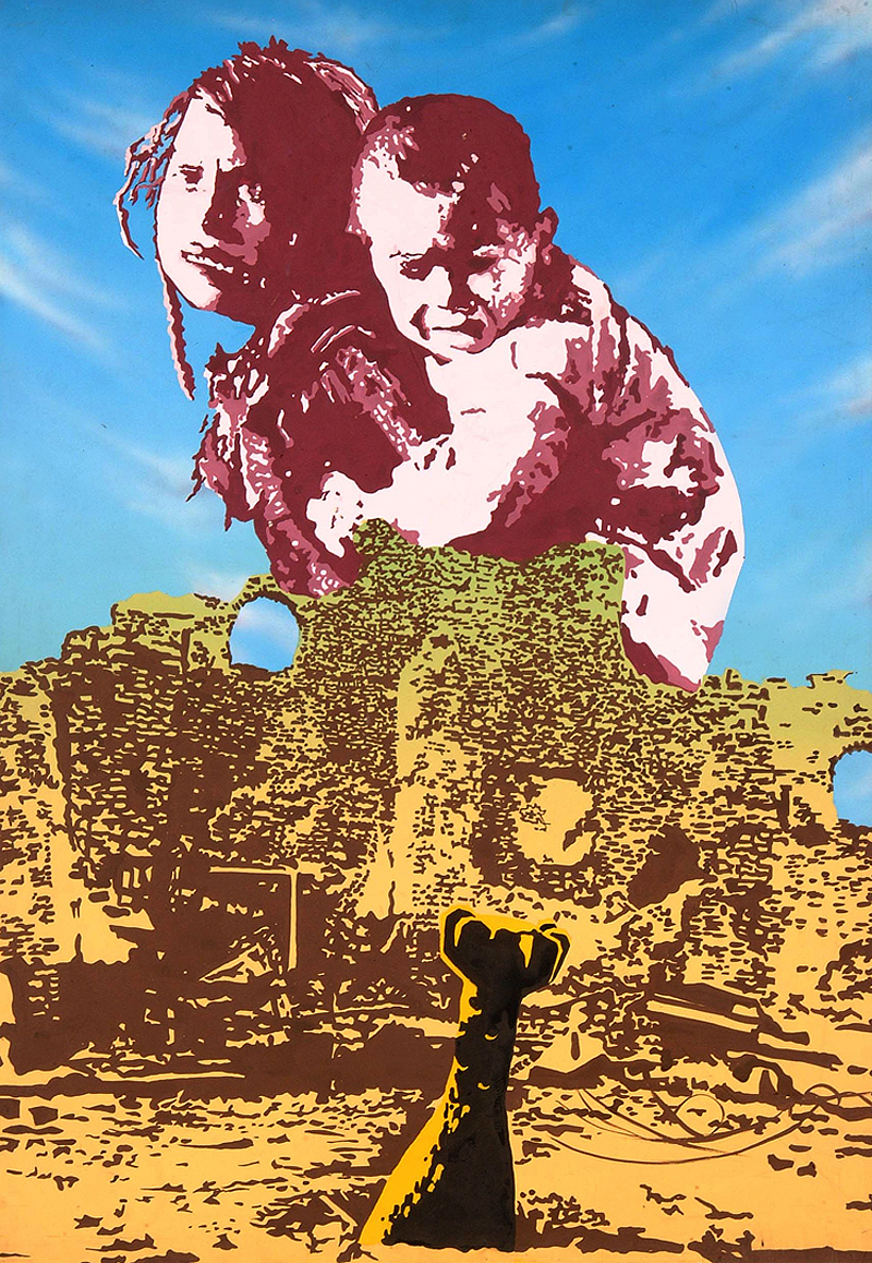 سایه سنگین جنگ همیشه بر سر ملتهایی است که قرار است زندگی آرامی داشته باشند. احمد آقاقلی زاده هنرمند گرافیستی است که تمامی این سالها به این موضوع اشاراتی واضح داشته است. گاهی به تجلیل از مقاومت و دفاع از میهن پرداخته و زمانی به زخمهای ناشی از جنگ می‌پردازد.