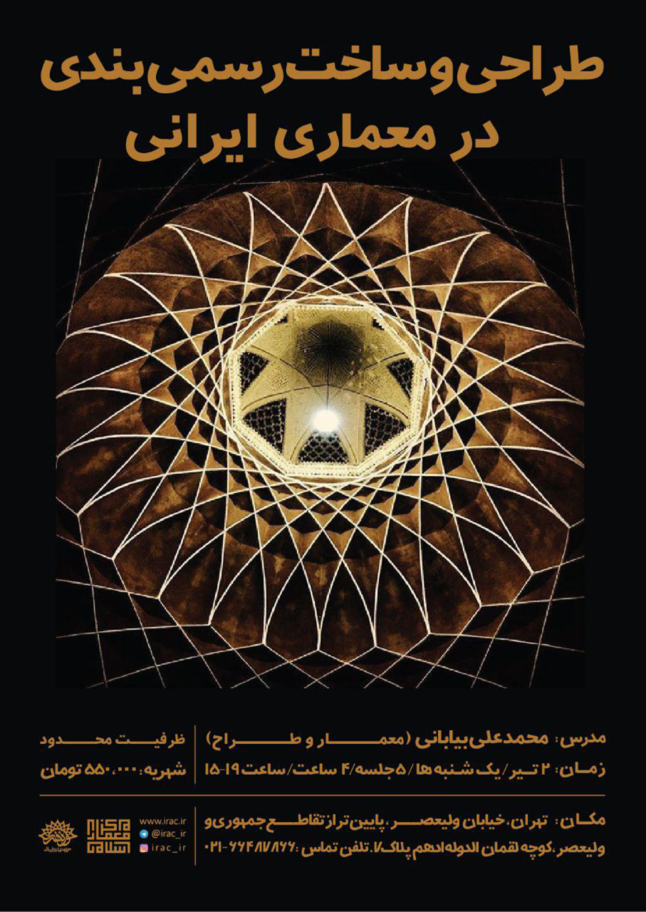 به گزارش روابط عمومی مرکز تجسمی حوزه هنری، مرکز معماری اسلامی کارگاه «طراحی و ساخت رسمیبندی در معماری ایرانی» را با مدرسی محمدعلی بیابانی برگزار میکند.