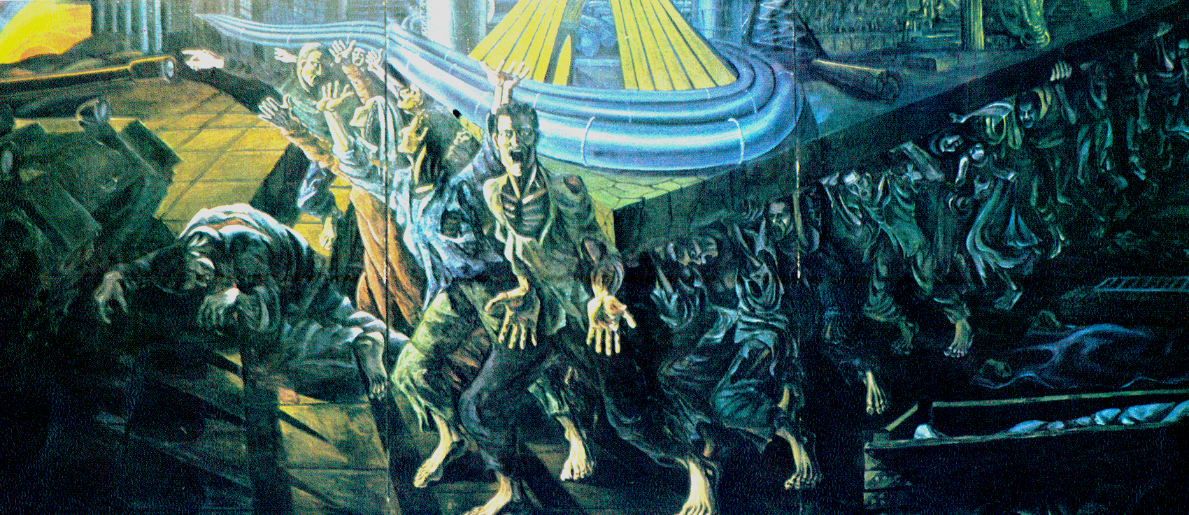 حکومت استبداد، ایوب امدادیان، رنگ و روغن روی بوم، 450 × 200 سانتیمتر(3 لته)، 1357