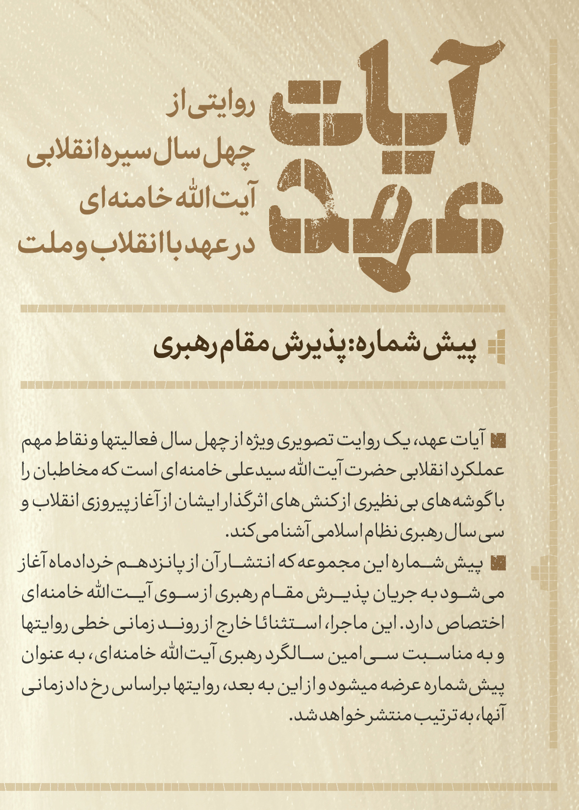 پیششماره این مجموعه که انتشار آن از پانزدهم خردادماه آغاز شده به جریان پذیرش مقام رهبری از سوی آیتالله خامنهای اختصاص دارد. این ماجرا، استثنائا خارج از روند زمانی خطی روایتها و به مناسبت سیامین سالگرد رهبری آیتالله خامنهای، به عنوان پیششماره عرضه میشود و از این به بعد، روایتها براساس رخ داد زمانی آنها، به ترتیب منتشر خواهد شد.