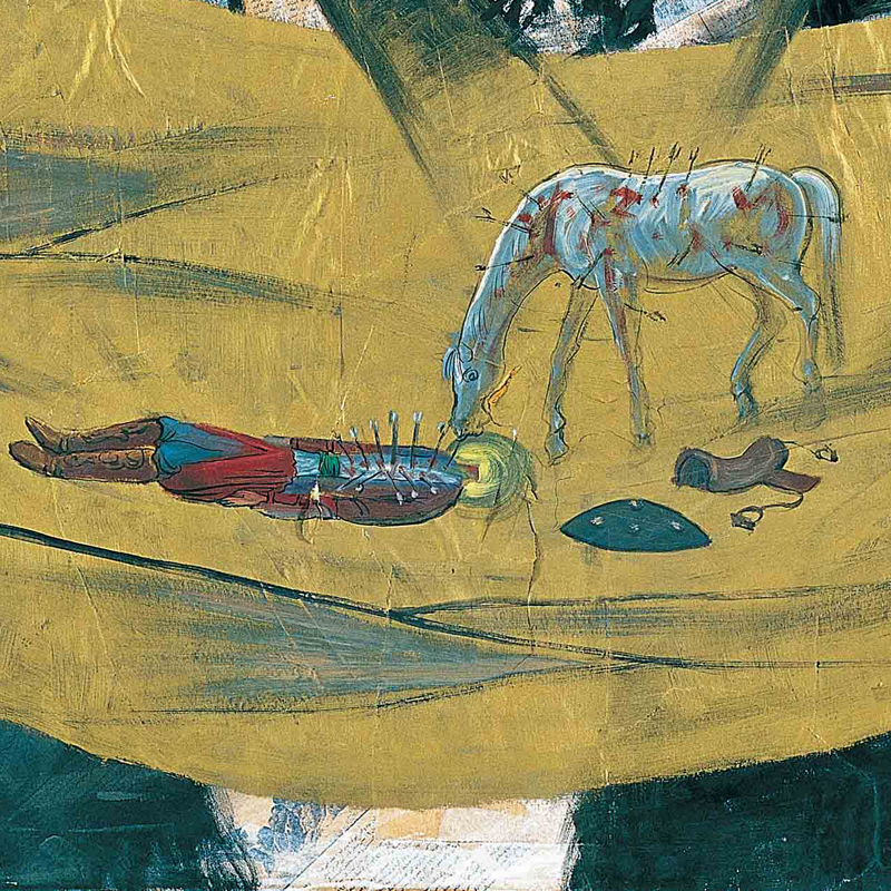 هنرمند نگاهی به تاریخ می اندازد و تفکراتش را به تاریخ معاصر وصل می کند. نقاش شاید خود خبر نداشته است موضوعی که در دهه 60 شمسی به آن می پردازد هنوز با گذشت 30 سال موضوع روز جهان اسلام است .