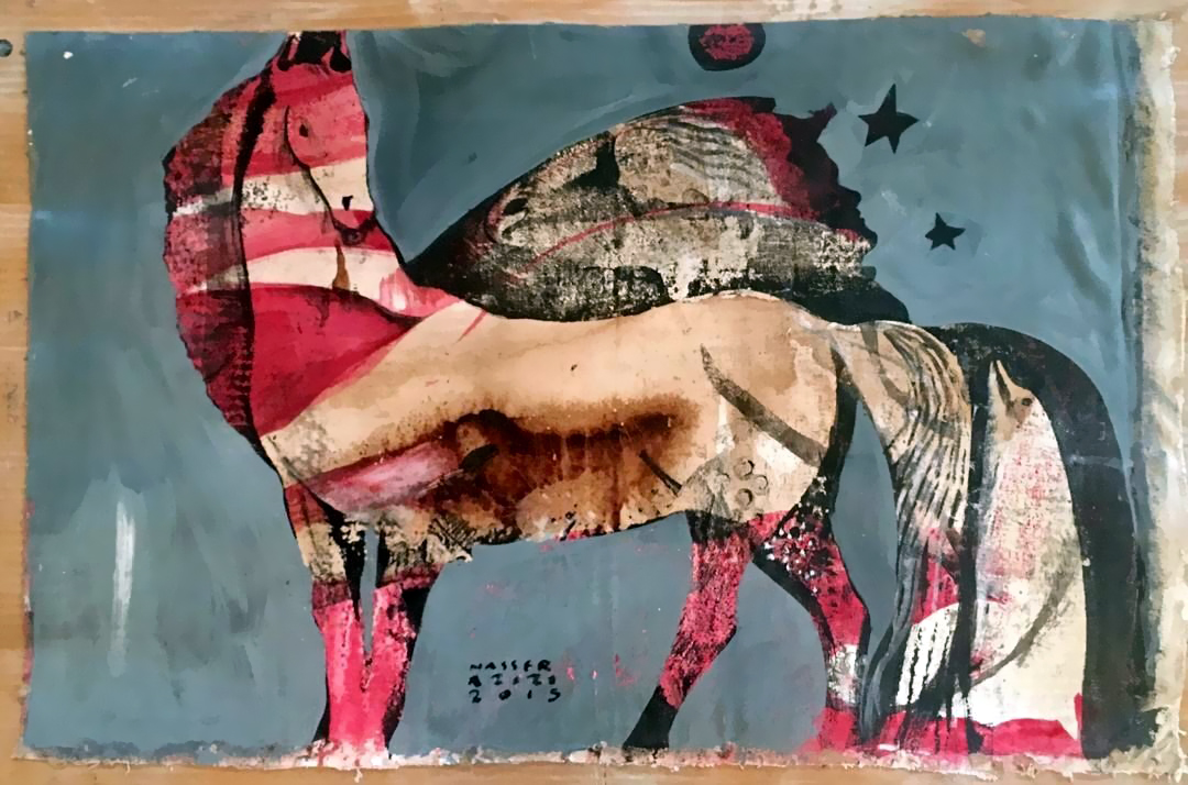 ناصر عزیزی از آن دسته نقاشانی است که از خیال صرفاً برای خلق زیبایی بهره میگیرد و تا امروز لجوجانه، جز به خلق زیبایی و ایجاد لذت بصری نکوشیده است. نقاشیهای او چه پیکره نگاری باشند، چه متأثر از تاریخ یا حتی کالیگرافی، برآمده از نگاه زیبایی شناسانه او هستند چرا که معتقد است هنرمند در زمینه هنرهای زیبا تحصیل میکند و لاجرم باید زیبایی خلق کند.