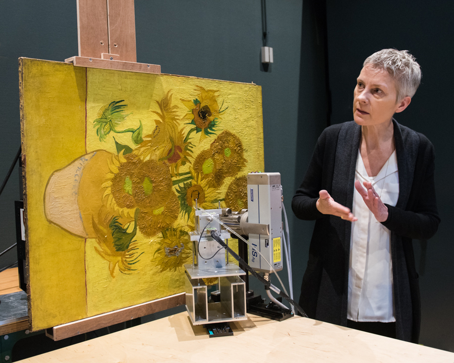 به گزارش روابط عمومی مرکز تجسمی حوزه هنری به نقل از آرت نت نیوز، تابلو نقاشی «گلهای آفتابگردان» اثر «ونسان ونگوگ» که در سال ۱۸۸۹ خلق شد، مشهورترین اثر این هنرمند در موزه آمستردام محسوب میشود. در حقیقت این تابلو نقاشی از چنان محبوبیتی در بین مردم برخوردار است که امکان جدا کردن آن از روی دیوارهای گالری برای انجام مطالعات تا دهههای متوالی وجود نداشت. اما اکنون به لطف پیشرفت تکنولوژی، کارشناسان توانستند تحقیقات خود را در همین گالری انجام دهند. بنابراین یک تیم متشکل از تاریخدانان هنری و کارشناسان بازسازی آثار هنری نتایج مطالعات خود را در نمایشگاهی ویژه ارائه میدهند. این نمایشگاه با عنوان «ونگوگ و گلهای آفتابگردان» از بیست و یکم همین ماه تا یکم سپتامبر فعالیت دارد.