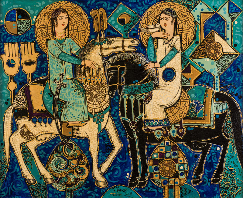 دومین اثر نیز در سال ۱۳۷۰ با تکنیک ترکیب مواد روی کاغذ چسبانده شده روی بوم در ابعاد ۸۰ ×۱۰۰ سانتیمتر خلق شده که نهایتاً به قیمت ۲۲۰ میلیون تومان خریداری شد. این اثر با مضمونی آشنا، لحظه وصل دو دلداده را نمایش میدهد. مضمونی که سدهها در نگارههای نُسخ مصور، نقوش موجود در سفالینههای مینایی و زرینفام و صفحات کتب چاپسنگی، دستمایه کار هنرمندان ایرانی قرار گرفته بود.