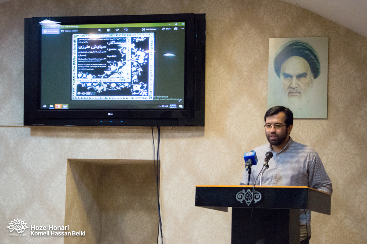 در ابتدای برنامه، علی فروزانفر ضمن خوشامدگویی و خیرمقدم به حاضران در برنامه درباره هنر آینهکاری گفت: هنر آینهکاری یکی از هنرهای بسیار زیبا و ظریف تزئینات خاص معماری است. زمانی که نبوغ و هنر ناب ایرانی با هنر آینهکاری تلفیق میشود، شاهد ظهور و بروز آثار ممتاز و یک بلوغی را در حوزه تزئینات معماری هستیم. استاد مسلم حوزه آینهکاری استاد سیاوش طرزی هستند که امروز مفتخریم آثار زیبای ایشان را در تالار شمسالعماره مشاهده کنیم و از دیدن آنها لذت ببریم. آثاری که امروز به نمایش درآمده است حاصل تلاش و زحمات استاد طرزی طی سالیان گذشته است.