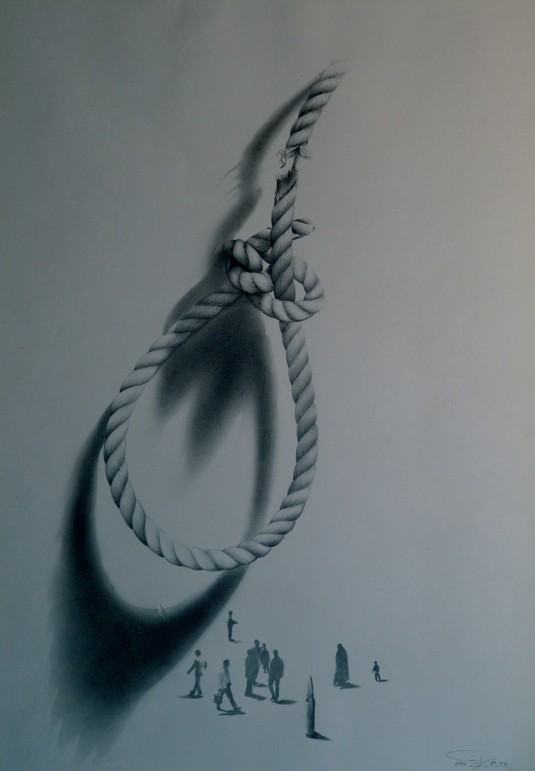 مرتضی کاتوزیان در عرصه هنر انقلاب و لااقل نقاشی انقلاب به سبب مضمون، از اولی هاست. طراحی بدون رنگِ «خاطرات سال های سیاه دهه 30» که در سال 1348 با مداد روی کاغذ اجرا شده، اولین اثری است که این نقاش در اعتراض به دستگیری ها و اعدام های سال های پس از ملی شدن صنعت نفت کشیده است. در این اثر، وجود تیپ های مختلفی که به کار روزانه مشغول اند و طنابِ داری که بسیار هولناک بالای سر همه سنگینی می کند، نشان از حضور پنهان و آشکار یک خفقان بزرگ دارد. هرچند، پارگی این طناب، استشمام نقاش از آینده این فضاست.