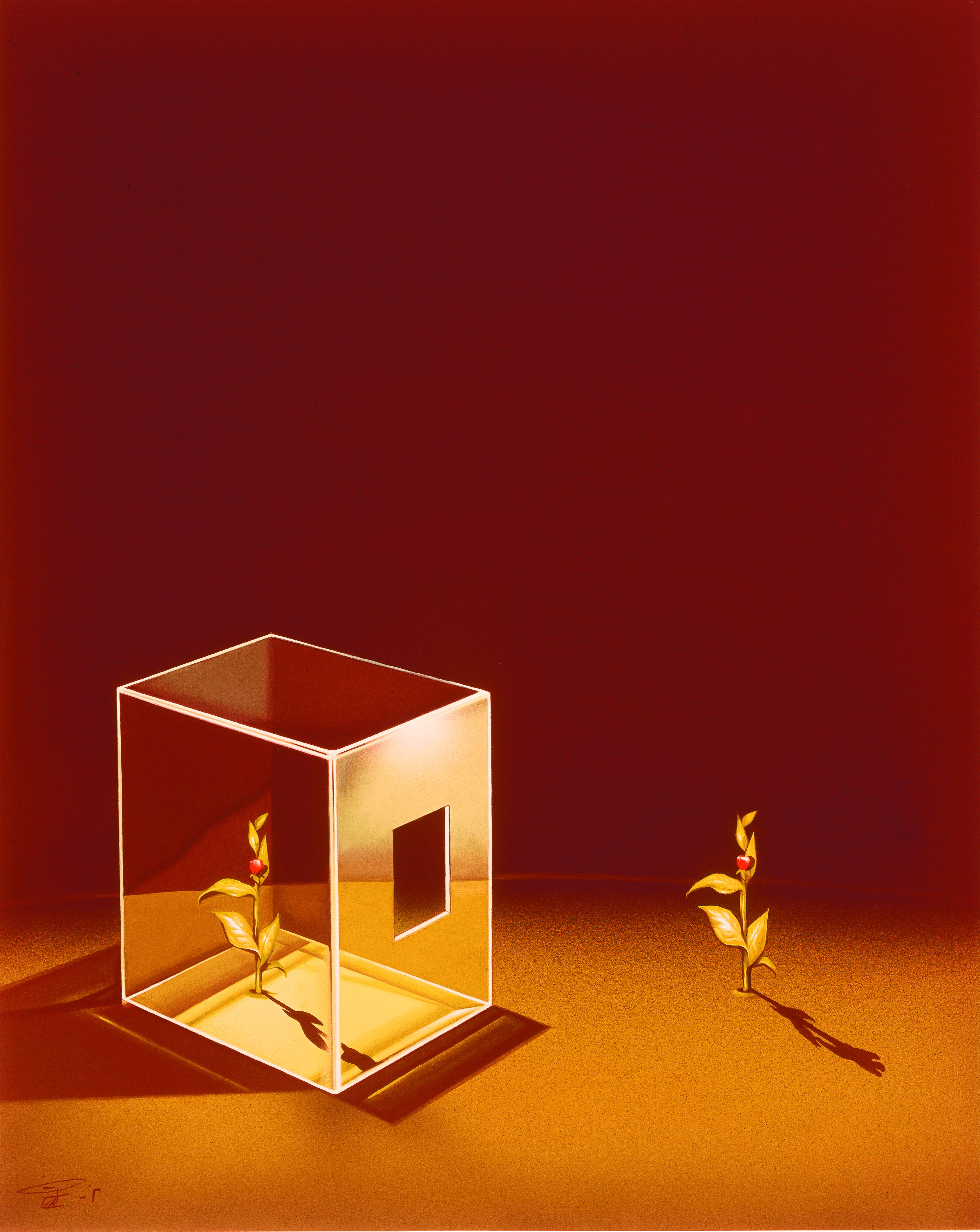 مرتضی کاتوزیان در سال 1355، تابلوی «ارزش آزادی» را در دو قسمت اجرا کرد که در آن دو فضای متفاوت به انگارۀ سلول زندان برای دو گُل به تصویر کشیده شده و گُلِ درون محفظه شیشه ای به پژمردگی و گُل خارج از آن، بزرگ و شاداب گشته است.