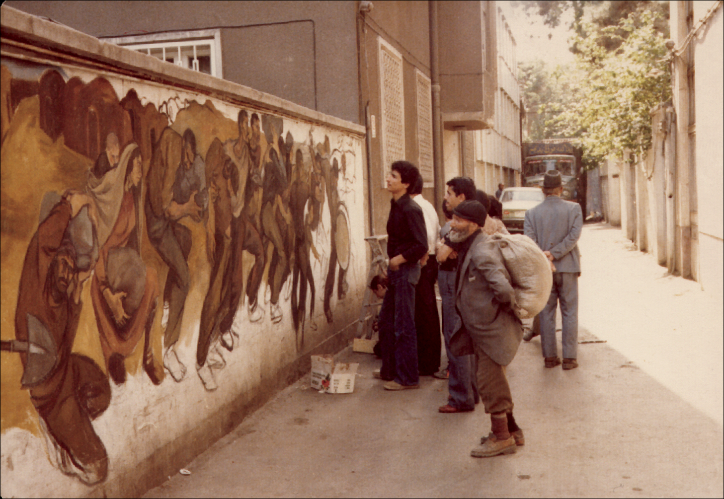 بدون عنوان، نیلوفر قادری نژاد، رنگ و روغن روی دیوار(خیابان جمهوری)، 800×200 سانتیمتر، 1358