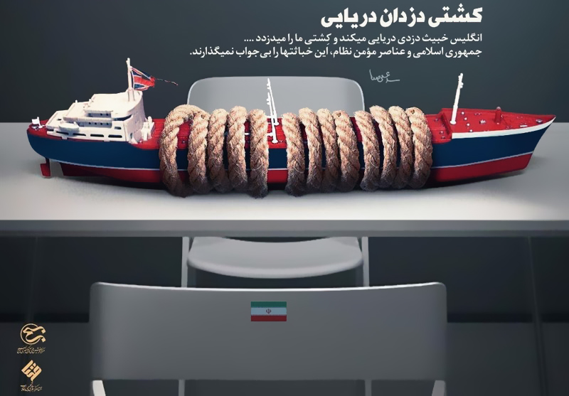 جملهای از مقام معظم رهبری درباره دزدی انگلیسیها با اشاره به نفتکش ایرانی که چندی پیش توسط انگلیسیها ربوده شده بود، در این پوستر نقش بسته است :«انگلیس خبیث دزدی دریایی میکند و کشتی ما را می دزدد... جمهوری اسلامی و عناصر مومن نظام، این خیانتها را بی جواب نمیگذارند.»