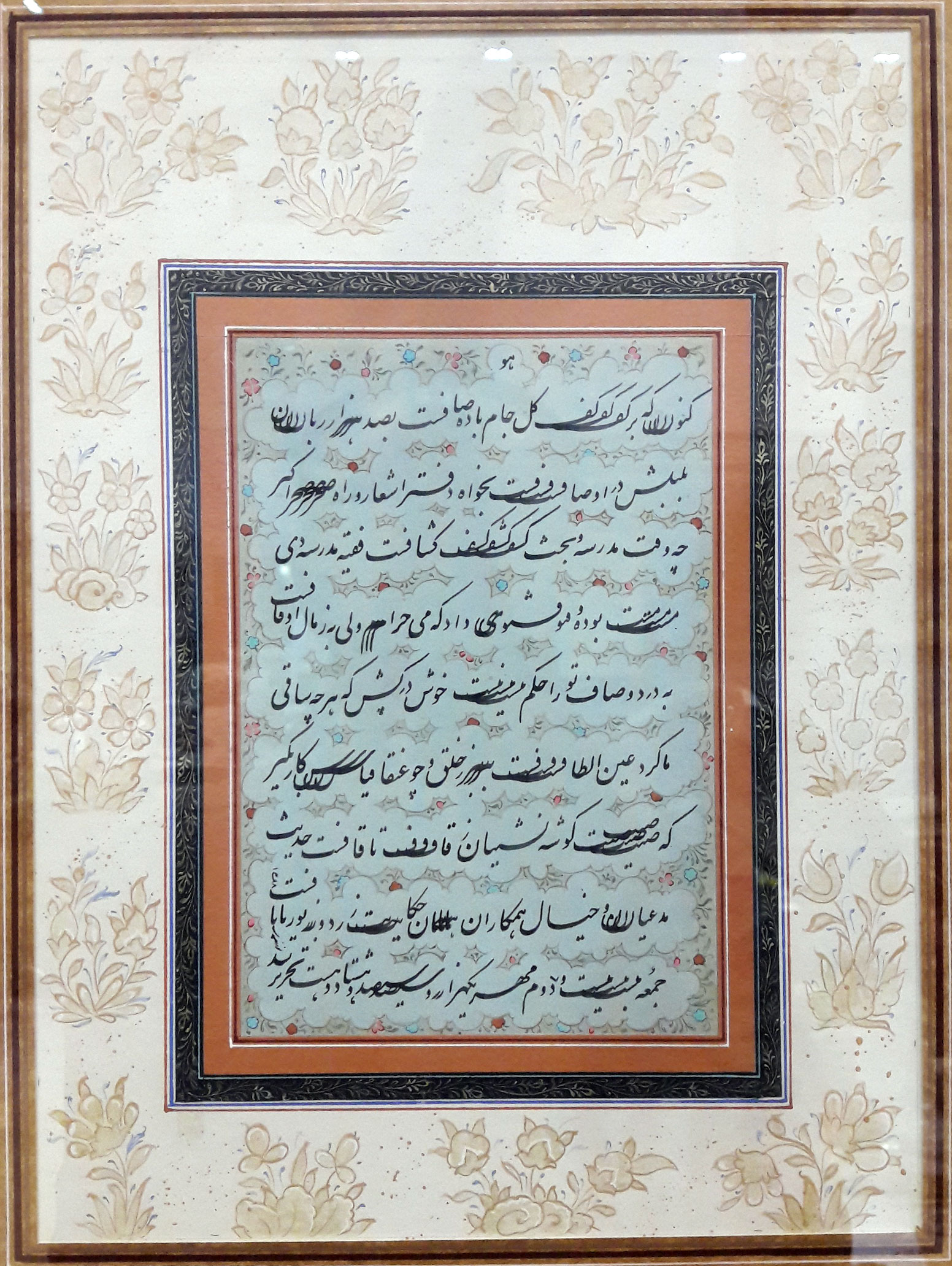 بنده سالیان سال است که خط نستعلیق کار میکنم و اگر بخواهم در مورد این موضوع تخصصیتر صحبت کنم باید بگویم که این خط در مکتب استاد کلهر و به شیوه عمادالکتاب است که از شاگردان برجسته ایشان بوده و در ادامه باید گفت این شیوه تلفیقی از خط مرحومین آقا سیدحسن و آقا سیدحسین میرخانی و مخصوصا استاد خروش می باشد که شیوهای اصولی و بسیار شیرین است.