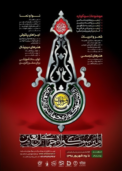 به گزارش روابط عمومی مرکز تجسمی حوزه هنری به نقل از تسنیم، اولین سوگواره حماسی اربعین در 5 بخش شعر و ادبیات، هنرهای تجسمی، نوا و نما، اجراهای پاتوقی، هنرهای دیجیتال و بخش جانبی تولیدات آموزشی برای سفر زائرین برگزار میشود.