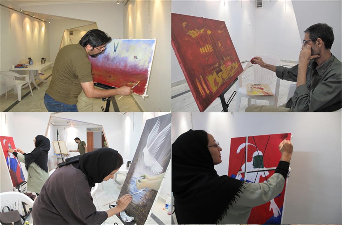 هنرمندان حاضر در این کارگاه، در دو نوبت صبح و عصر به تولید آثاری با موضوعات عاشورایی پرداختند.