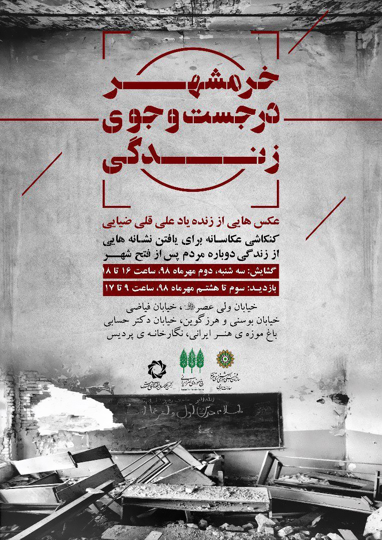 تصاویر این نمایشگاه با مضمون «کنکاشی عکاسانه برای یافتن نشانههایی از زندگی دوباره مردم پس از فتح شهر» توسط زنده یاد علیقلی ضیایی ثبت شده است. این نمایشگاه از دوم تا هشتم مهرماه از ساعت ۹ تا ۱۷ آماده استقبال از هنردوستان است.