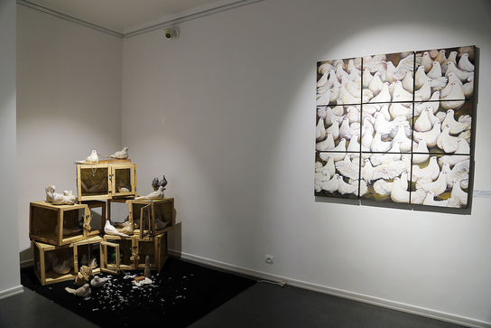 آقایی با بیان اینکه نخستین بار است کار حجم انجام داده است، افزود: در طول سه سالی که روی این مجموعه کارکردم موضوع در وجودم عمق پیدا کرد و المانهای گوناگونی وارد کارم شدند. فکر کردم مدیاهای دیگری به جز نقاشی میتواند باعث شود کارم بهتر با مخاطب ارتباط برقرار کند. پرندهها از جایی وارد نقاشیهایم شدند و پس از آن فکر کردم تبدیل آنها به حجم میتواند باعث قوت بیشتر آنها شده و پیغام را بهتر به مخاطب برساند.