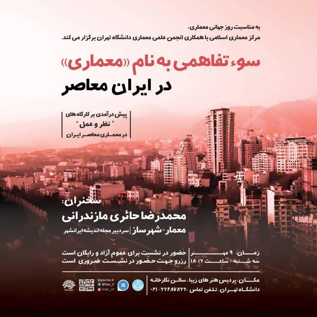 به گزارش روابط عمومی مرکز تجسمی حوزه هنری، مرکز معماری اسلامی حوزه هنری به مناسب روز جهانی معماری به سراغ مسئله معماری امروز ایران رفته است. مسئلهای که شاید آن را بتوان سوء تفاهمی به نام معماری در ایران معاصر خواند.