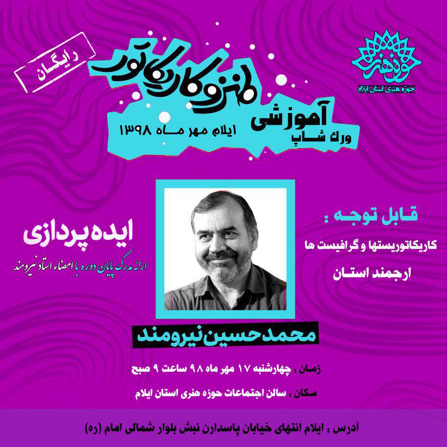 استاد محمدحسین نیرومند مدرس این ورک شاپ می باشند و گواهی پایان دوره با امضای ایشان به هنرجویان حاضر در کارگاه تقدیم می شود.