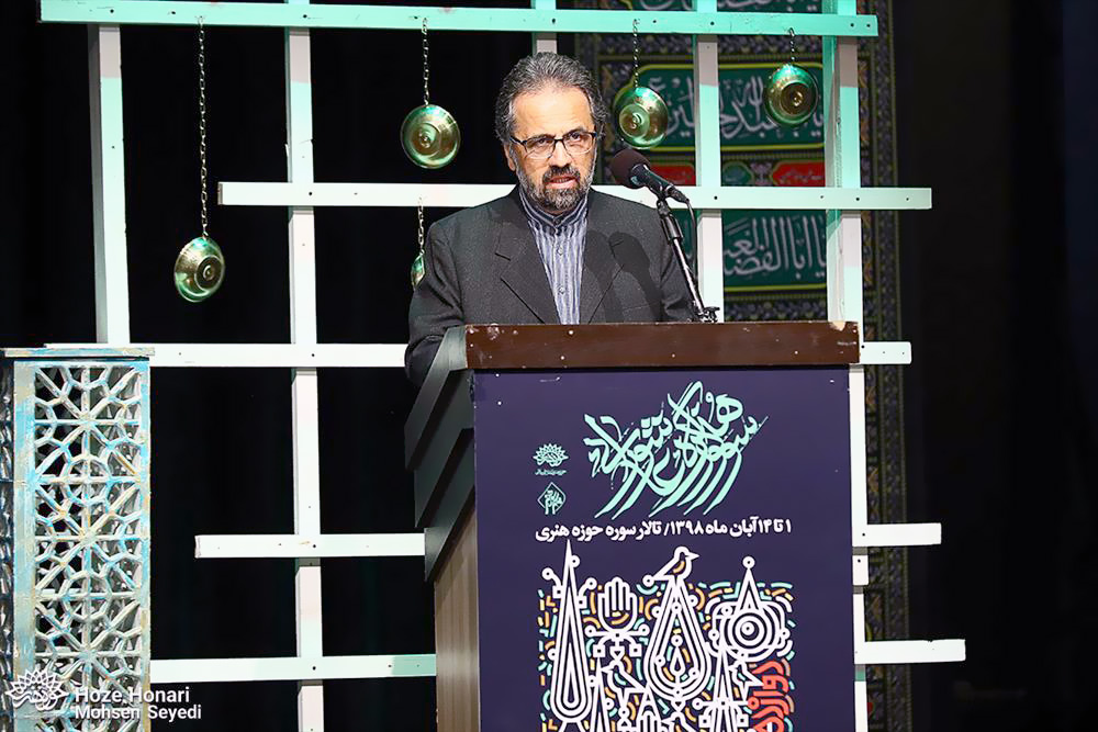 بعد از آن علی وزیریان دبیر هنری دوازدهمین سوگواره هنر عاشورایی روی سن رفته و گفت: سال 83 در ماه محرم وقتی که هیات‌ها و تکایا هریک آذین‌بندی خاصی داشتند ، تصاویری از نقاشی‌های مختلف که معمولا نسبت سالمی با عاشورا نداشتند، شهر را پر کرده بودند. یادم است خبرنگاری خارجی قصد تهیه گزارش از این تصاویر داشت و مغرضانه می‌خواست تصویری خشن از آیین‌های عزاداری ما را برای مردم کشورش به نمایش بگذارد.