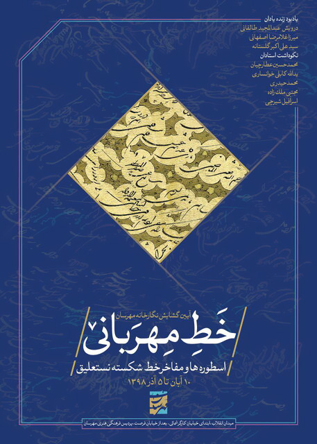 نگارخانه مهرسان به نشانی میدان انقلاب، ابتدای خیابان کارگر شمالی از ساعت ١٠ صبح تا ٢٢ میزبان علاقهمندان خط و خوشنویسی است.
