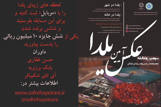 به گزارش روابط عمومی مرکز تجسمی حوزه هنری به نقل از ایسنا، مسابقه عکس آیین یلدا با محوریت معرفی شبنشینی یلدا به عنوان یکی از آداب و رسوم و سبک زندگی ایرانی با همت دبیرخانه مسابقات فرهنگی هنری سفرههای ایرانی اسلامی با حمایت سازمان زیباسازی شهرداری تهران، به همراه یک بخش جنبی نقاشی یلدایی کودکان برگزار میشود.